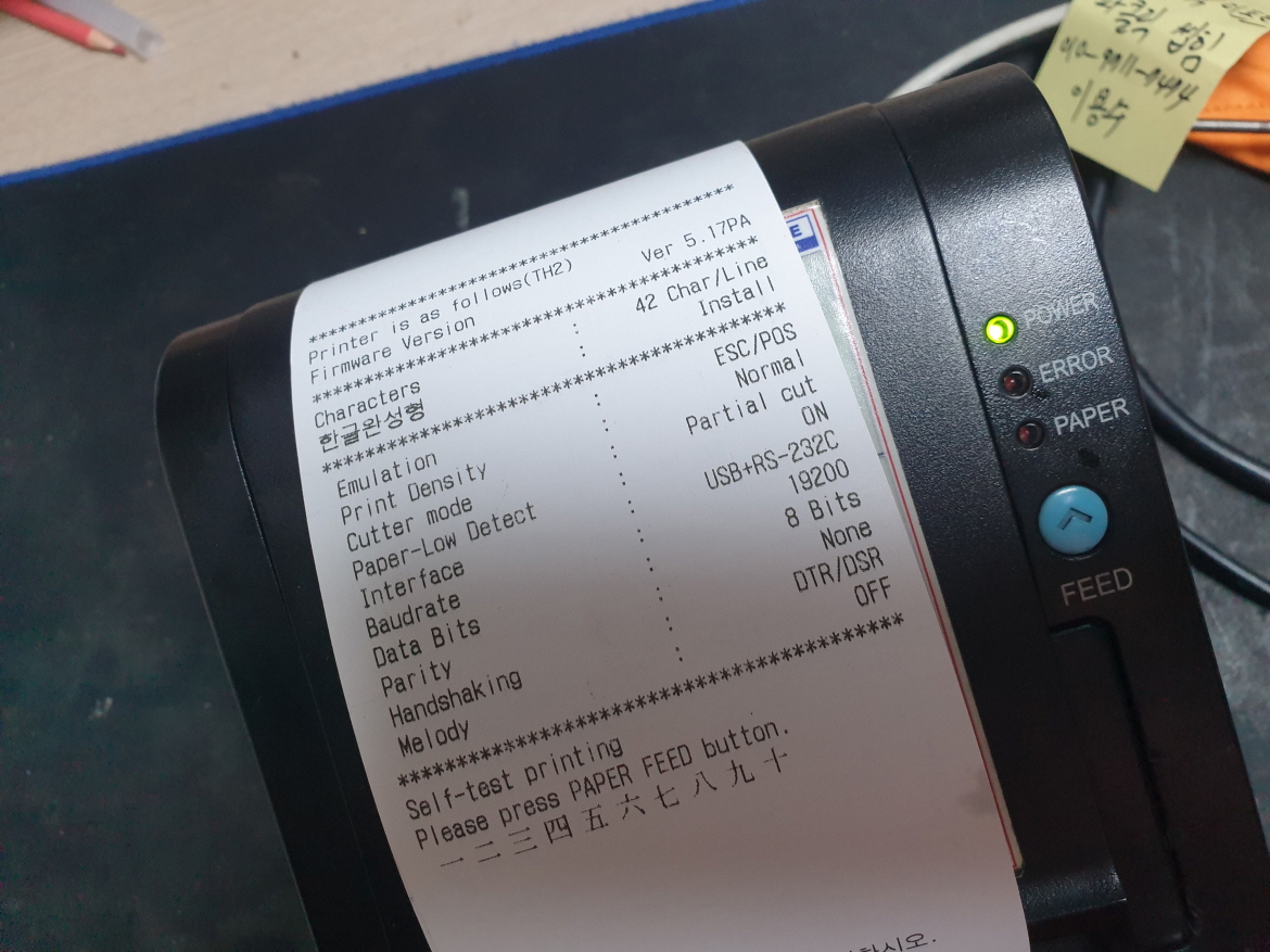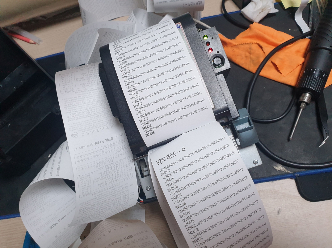 영수증출력시 영수증컷팅후 용지 올라오지 않으며 에러불뜨며 인쇄가 안되는 문제로 수리 진행합니다.
