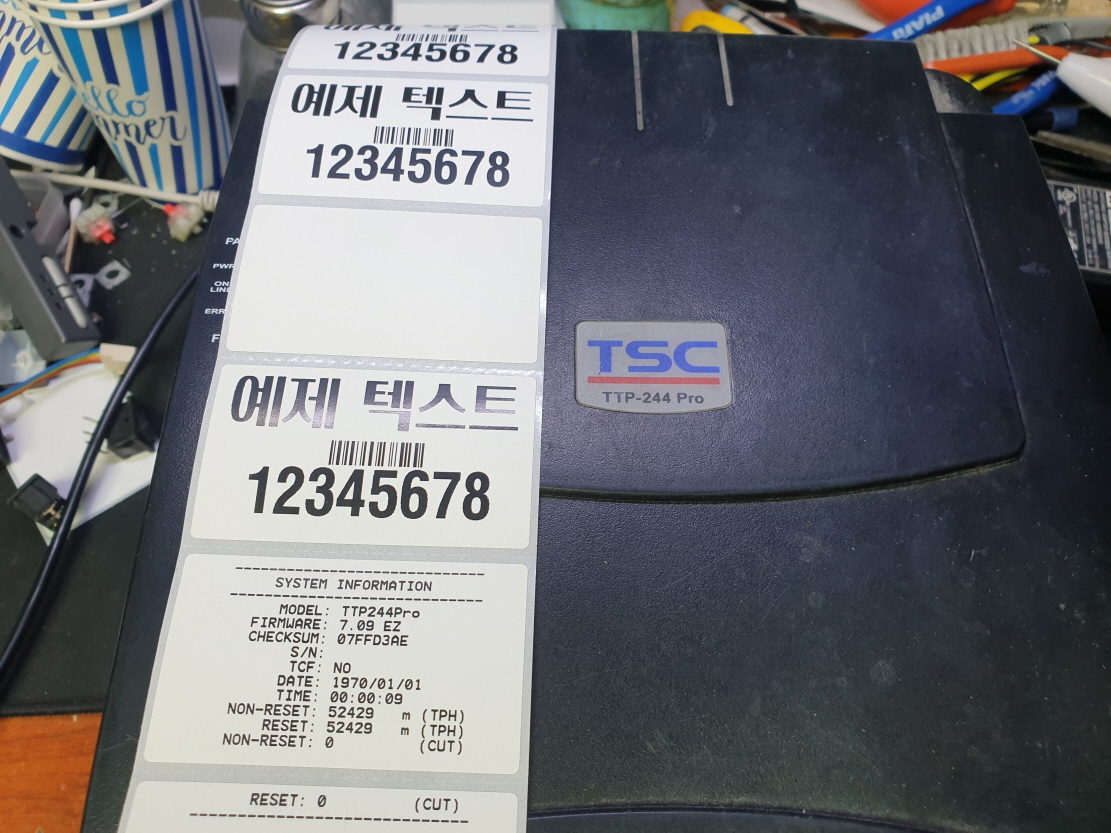 부산 사하구에서 간헐적으로 혼자 용지출력배출됨으로 TSC TTP-243Plus 유통 라벨 송장 바코드 프린터수리