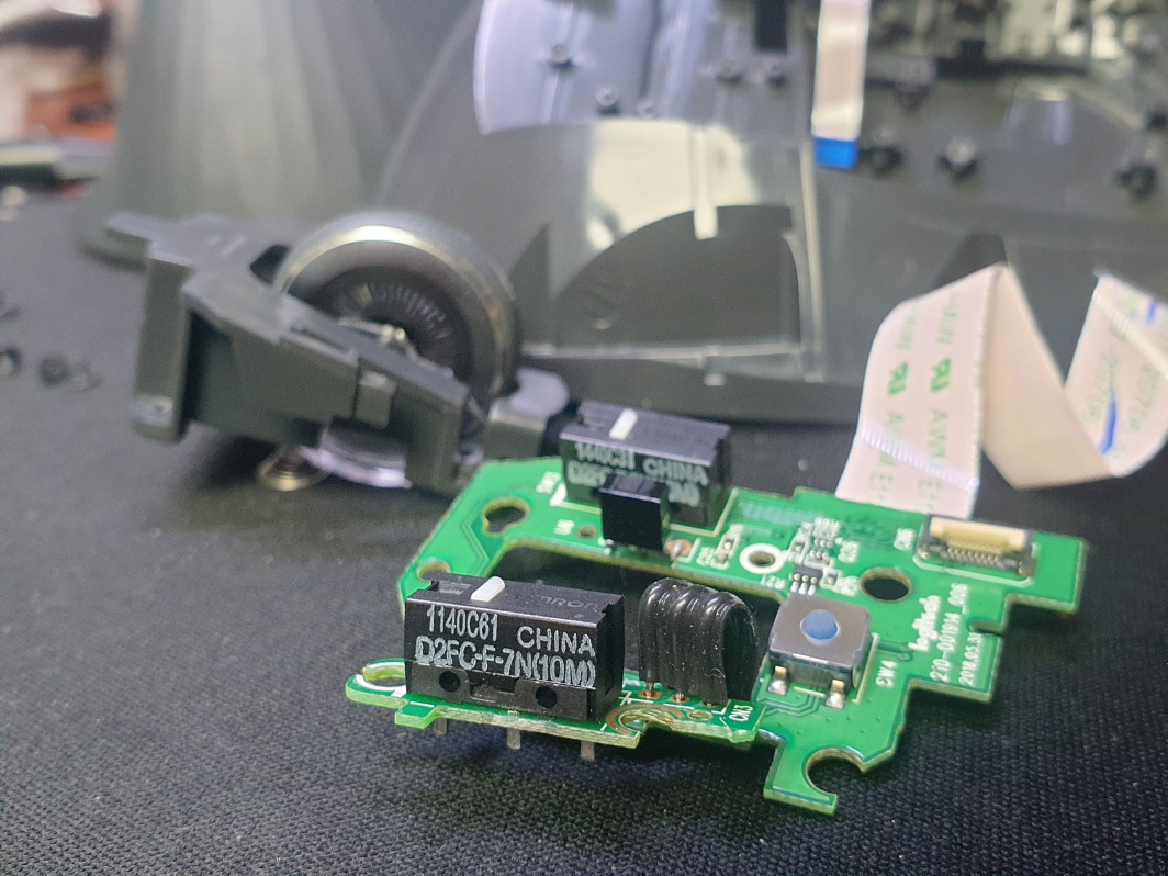왼쪽버튼 드래그풀리는 증상인 버튼내 스위치불량으로 새 스위치 D2FC-F-7N(100M) 좌우교체 수리 진행합니다.