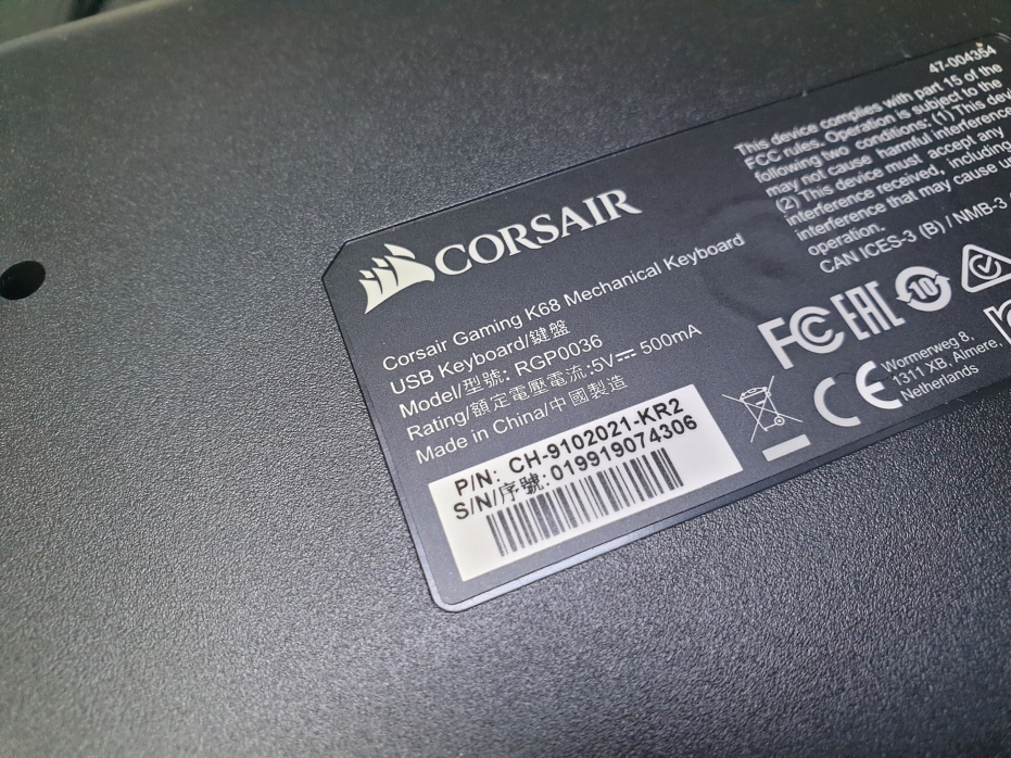 강원도 춘천에서 반복눌림증상 한번눌렀는데 여러 번 눌리는 상황으로 택배입고된 Corsair K68 RGP0036 커세어키보드 해외직구 사설 수리 고장 AS